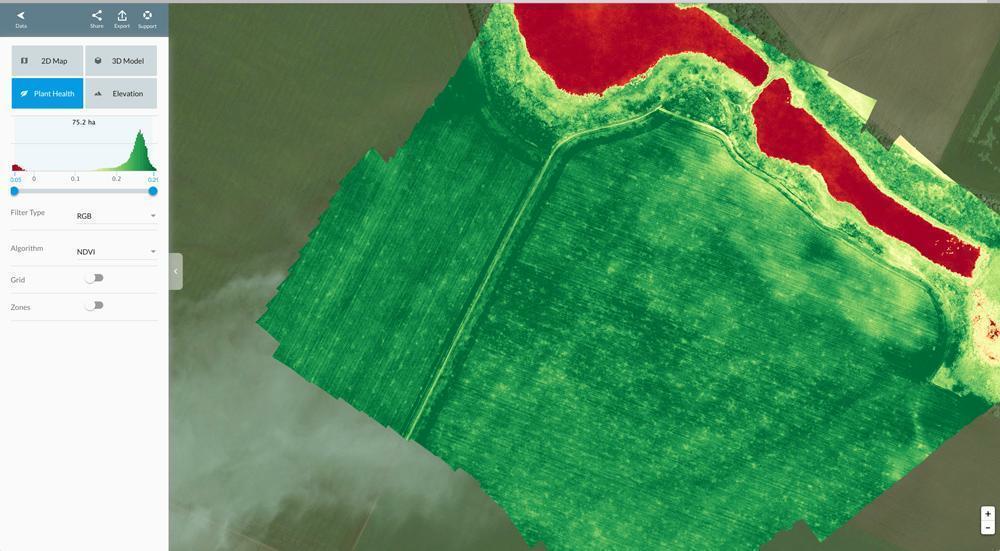NDVI (Normalized Difference Vegetation Index) – нормализованный относительный индекс растительности, по которому можно судить о развитии биомассы растений во время вегетации. Зелёные листья растений поглощают электромагнитные волны в красном диапазоне и отражают волны в ближнем инфракрасном. Чем больше листовая поверхность растений и чем больше хлорофилла в листьях, тем сильнее растения поглощают попадающий на них красный свет (и меньше его отражают)